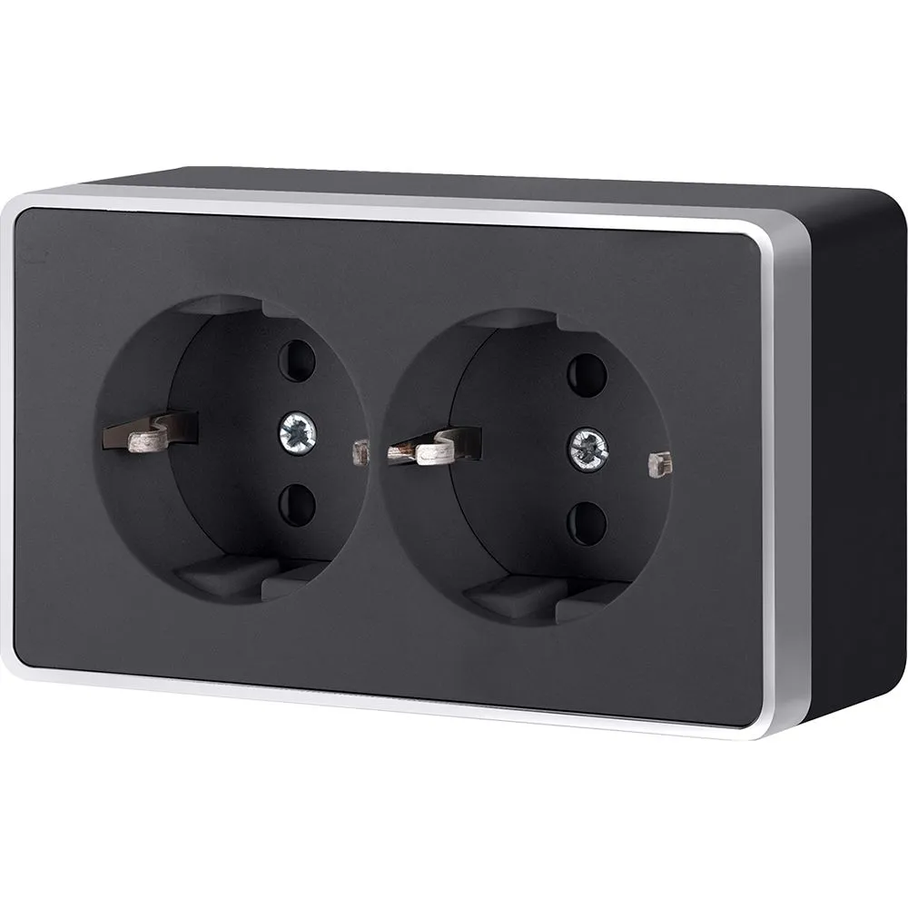 Розетка двойная с заземлением Gallant (черный/серебро) W5072134